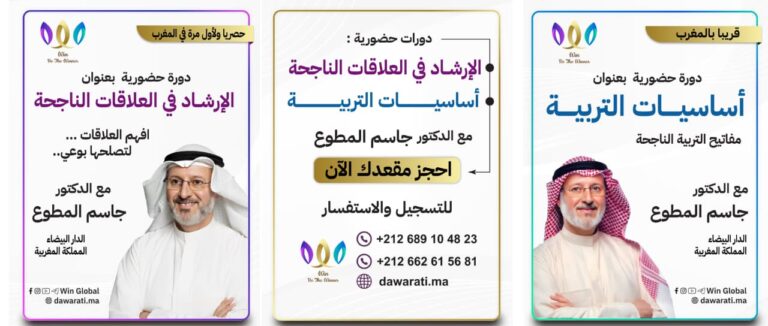 بدلاً من أن تأخذ دورة في التربية عند مدرب، ودورة في التخطيط لزواج سعيد عند آخر، ودورة في قيادة الذات عند ثالث... نحن، في مؤسسة وين، جمعنا لك كل شيء في "برنامج شامل" واحد. برنامج مصمم ليغطي كل جوانب حياتك (كزوج، كمربي، وكإنسان) مع د. جاسم المطوع، بخبرة تمتد لـ 30 عاماً في المحاكم والاستشارات.